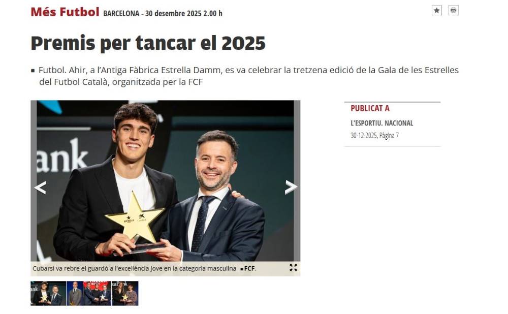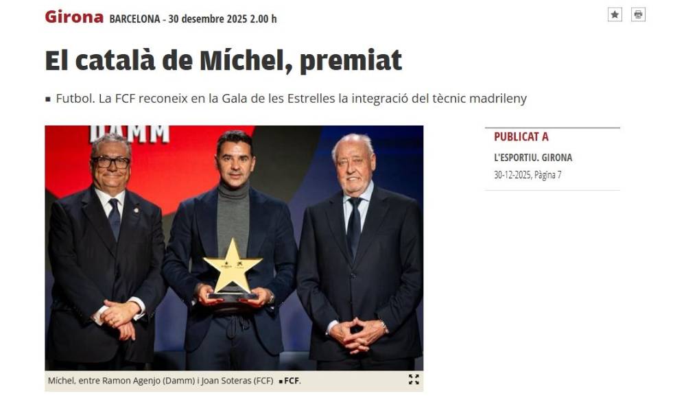 La Gala Estrelles és part de les grans portades dels principals diaris i edicions en paper d'aquest dimarts, 30 de desembre. L'Esportiu fa un resum de l'any 2025 amb la menció de 'Premis per tancar el 2025' en el rotatiu català i 'El català de Míchel, premiat' en l'edició gironina.